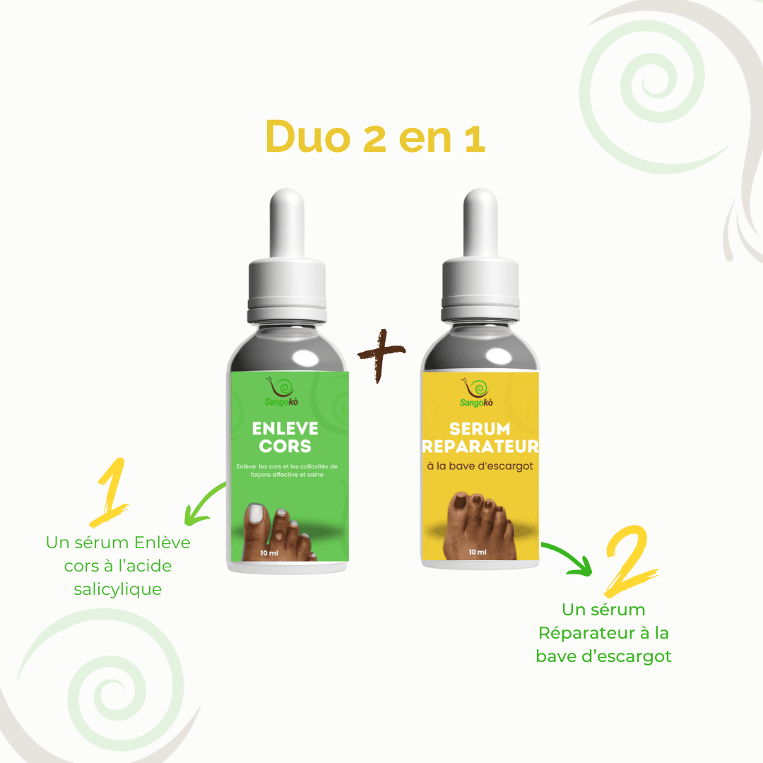 Libérez vos pieds des cors en moins de deux semaines! Découvrez notre Duo 2 en 1, la solution ultime pour combattre les cors et callosités tout en réparant et apaisant votre peau.